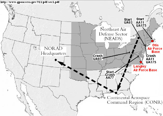 Man kann es nicht als Entschuldigung werten, dass es innerhalb des NEADS-Systems nur Otis Air Force Base und Langley Air Force Base mit Flugzeugen mit permanenter Alarmbereitschaft gab. (S.69 Schreyer , Inside 9/11)