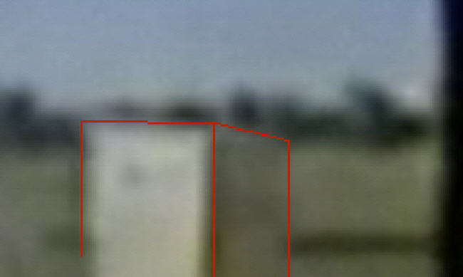 The quadrangle on the left side I want to see a little bit closer. But I cannot say for sure, that this is an additional falsification, for example to hide the tail fin of a Boeing 757 disappearing now in the Pentagon.