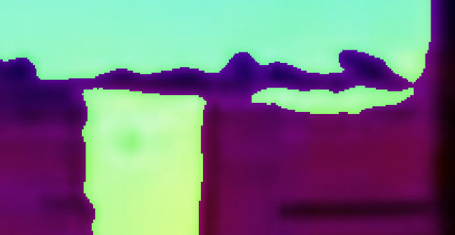 Here You see an enlarged section of the same video source, one second before the flight object appears.