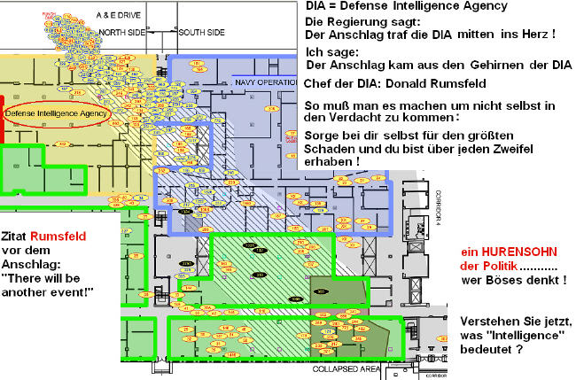 Abbildung: Der Pentagon vor dem Anschlag: - Was verbindet Dick Cheney, Donald Rumsfeld, die DIA ( Defense Intelligence Agency ) mit dem 11.September ?
