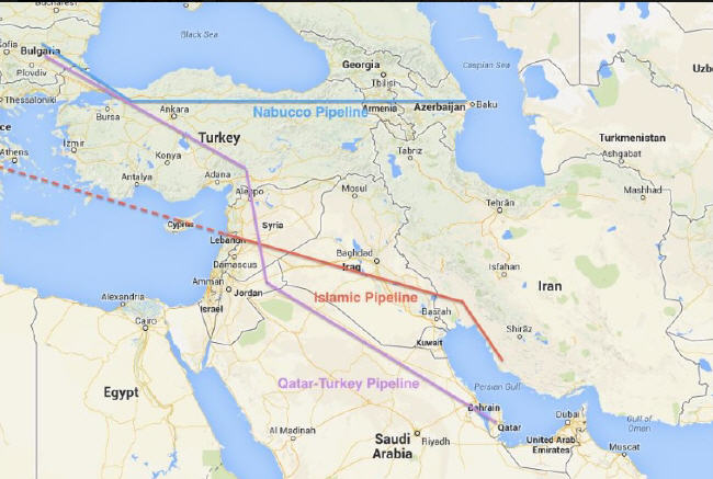 Assad hatte mit dem 10 Milliarden Dollar Vertrag über die Iran-Irak-Syrien-Pipeline (Islamic Pipeline) aus Sicht der USA eine rote Linie überschritten. Syrien ist der engste Verbündete des Iran und will verständlicherweise den Iran wirtschaftlich unterstützen. Die USA wollen dem Iran wirtschaftlich schaden, was nicht zuletzt an der Sanktionspolitik sichtbar wird. Der Pipelinevertrag gefiel weder den USA, noch der Türkei, noch Qatar, noch Saudi Arabien, noch Israel >>>Zeit für Krieg also<