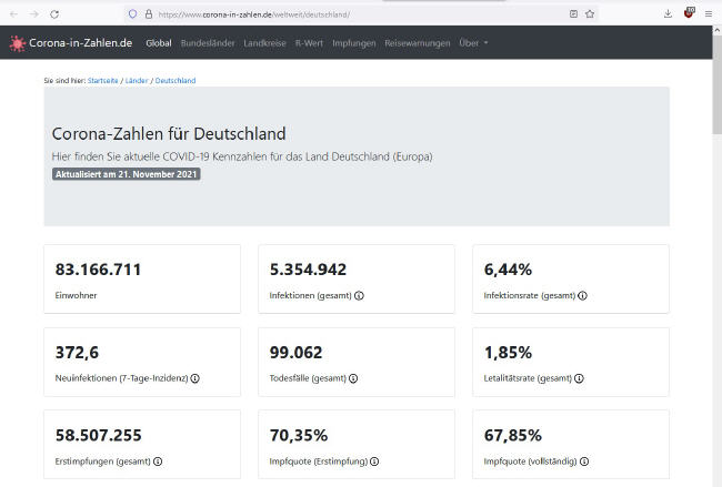 21.November 2021: Inzidenz von 34,5 (Niedrige Inzidenz angeblich erreicht durch die erste Boosterung = dritte Impfung)